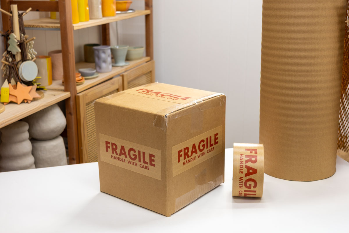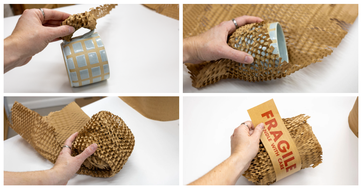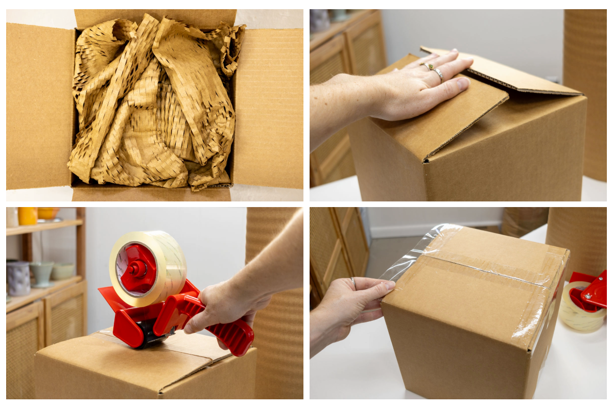 You don’t need fancy tools or layers of plastic to protect your ceramics. With recyclable honeycomb wrapping paper, strong fragile tape, and dependable packing tape, you can protect your work—and the environment—at the same time.